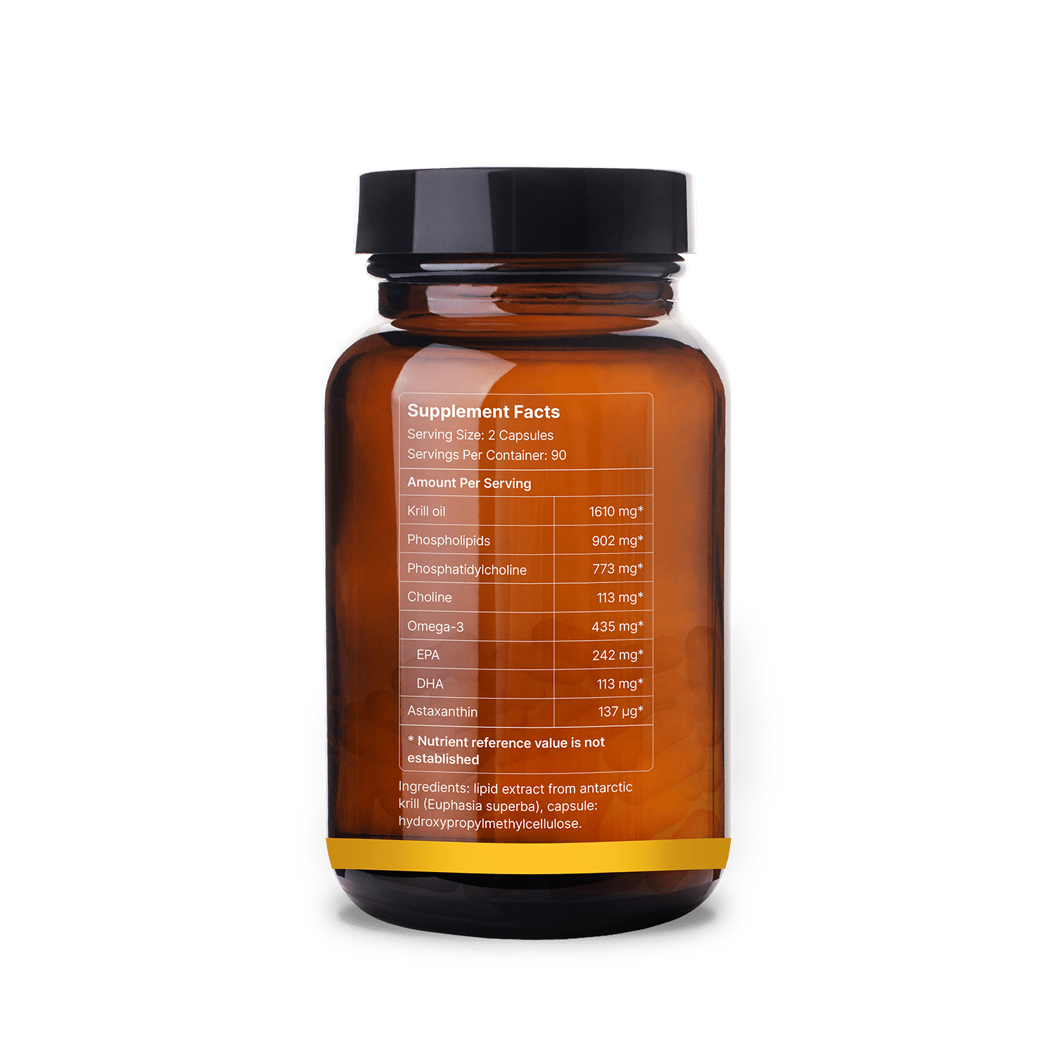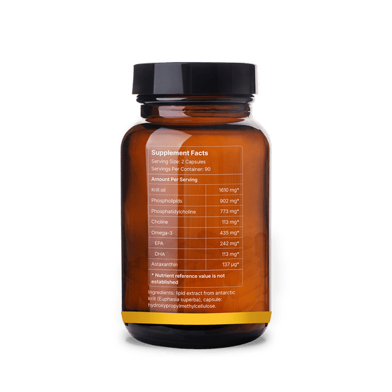 Krill Oil Plus comes from pristine Antarctic waters from MSC-certified fisheries, guaranteeing sustainable fishing and environmental friendliness. Krill oil is a rich source of the omega-3 fatty acids EPA and DHA and also contains naturally occurring astaxanthin and choline. Each capsule contains a staggering 805 mg of krill oil, ensuring a high concentration of nutrients in a single serving.